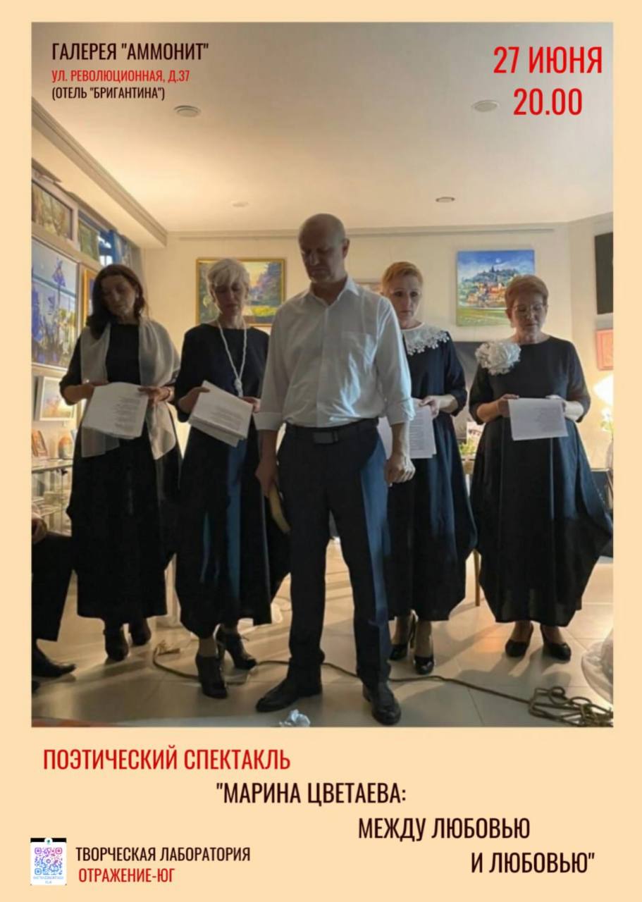 Приходите в пятницу 27 июня в 20.00 в галерею АММОНИТ и смотрите поэтический спектакль «Марина Цветаева: между любовью и любовью» в постановке творческой лаборатории «ОТРАЖЕНИЕ-ЮГ» под руководством Юлии Морозовой.