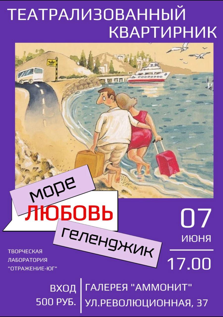 Ждём вас в субботу 7 июня в 17.00 на театрализованный квартирник «Море. Любовь. Геленджик», подготовленный творческой лабораторией «Отражение-Юг» под руководством Юлии Морозовой.